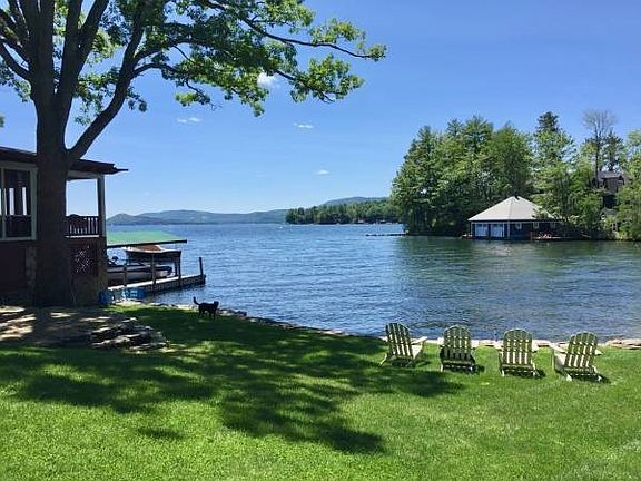 If you're looking for a home with a large front porch right on Lake Winnipesaukee where you can enjoy soft breezes coming off the lake and beautiful mountain views; a home with a large sandy beach where you can teach young children to swim; a home with a wonderful living room where you can read a book on a rainy day near a roaring fire, or play puzzles and games; a home where you often hear loons calling to each other at night - then this will be a wonderful spot for you. But is there a reason this home is still referred to as a camp, by some, for the kitchen, while fully equipped, doesn't have the latest in upscale appliances, and the bathrooms are utilitarian at best. This home is really about enjoying the lake, but it will not provide a spa-like experience for those who prefer fancier amenities on vacation. NH R&M TAX LIC # 024832 WOBUR.