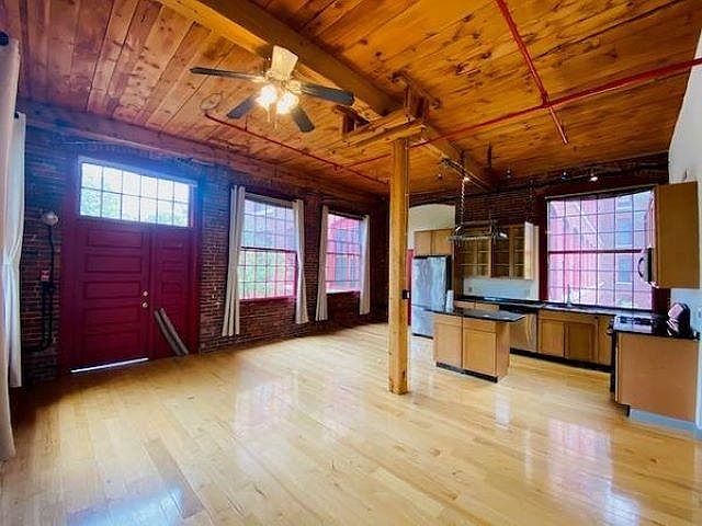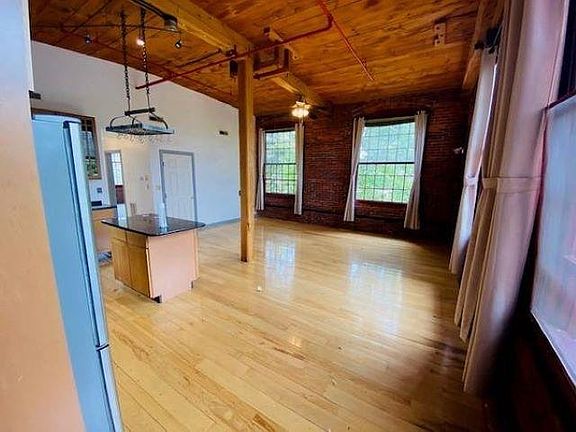 Luxury Mill Condo - Top floor of private two-story brick mill building. Flooded with natural light; all four sides of unit have 5' x 7' windows with 36 panes each. 11.5' ceilings, exposed wood and beams, two entrances: one with direct access to secure parking and one goes into the building with stairs and elevator access. Primary bedroom has walk-in closet. Unusually large bath for this complex. Renovated kitchen using SS and Granite. NO pets allowed. Listing Agent has interest in this property.