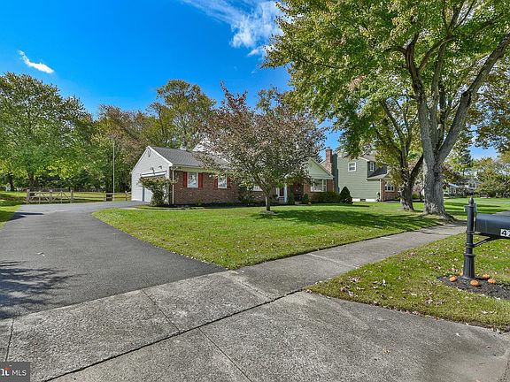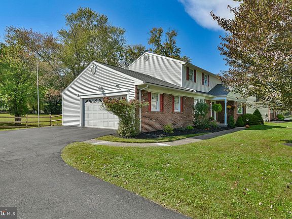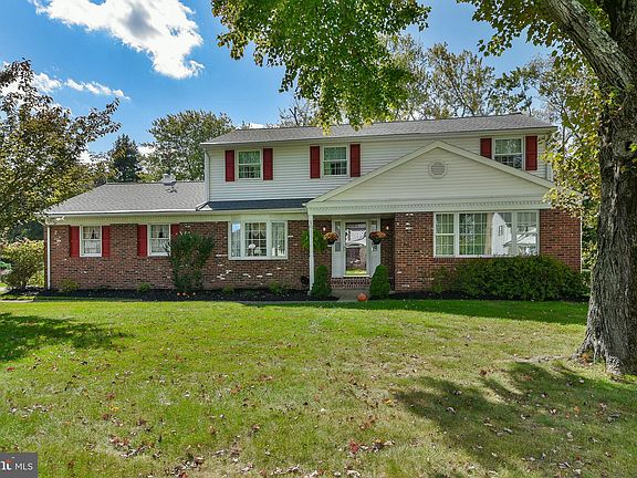 This rarely available Springfield Drive two-story home boasts four bedrooms and two and a half baths, exuding the charm of a Center Hall Colonial with a picturesque porch. Nestled on a quiet dead-end street with only 16 homes, this residence offers a serene setting while maintaining convenient proximity to schools, shopping, churches, and restaurants. The sunlit and spacious living room is adorned with exquisite hardwood floors and a bay window, creating an inviting atmosphere. The ample dining room, also featuring hardwood flooring, seamlessly leads to a stunning eat-in kitchen. This kitchen is complete with cherry wood cabinets, a garden window, overlooking expansive yard, granite countertops, stainless steel appliances, and an abundance of cabinetry. The backsplash tells a family history with Mercer tiles of loved family pets The family room is a cozy retreat, accentuated by a brick fireplace and beautiful parquet flooring. The back door opens to a wood deck overlooking the expansive well-maintained fenced rear yard. The laundry room includes a washer and dryer for added convenience. The two car side garage provides interior excess to the laundry/mud room. The second floor hosts a spacious primary bedroom with ample closet space and an en-suite bathroom featuring a stall shower. Three additional expansive bedrooms on this level also showcase beautiful hardwood flooring. A hall bathroom serves these bedrooms. Linen closet is conveniently located in the hallway.