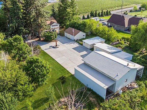 Step into a piece of history with this charming 1910 farmhouse, offering 3 bedrooms and 2 bathrooms spread over 2000 sq ft of living space. Nestled in a picturesque park-like setting, this home exudes all the character and charm of the turn of the century, boasting hardwood floors and spacious rooms perfect for comfortable living. Enjoy gatherings in the large dining room and living room, or relax on the wrap-around porch, blending timeless elegance with modern updates including a newer roof, HVAC system, 300-foot deep well, underground sprinklers, siding, and vinyl windows.Situated on just over 2 irrigated acres, this property provides ample space for outdoor activities and features multiple outbuildings ready for your customization. With tons of paved parking. Plus a 1200 SQ FT INSULATED SHOP built in 2009, complete with two 12-foot doors, a hydraulic lift, swamp cooler, wood stove, sink, and a built-in workbench.This home offers endless possibilities for hobbyists and enthusiasts alike. Don't miss the opportunity to own a piece of history with all the conveniences of modern living in this idyllic farmhouse retreat.