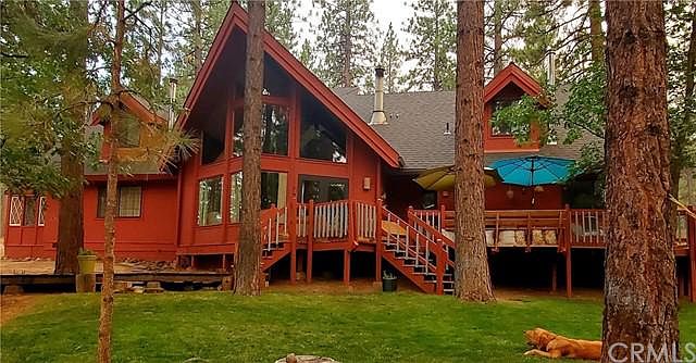 This house (with seasonal creek) is a Lindal Cedar home with an open floor plan. Home updated with hardwood floors, new kitchen appliances, central air and heat, wood stove in living room and new roof. In 2020 and new roof on the 4-car garage. Spacious front deck, with a redwood hot tub. This home also has an open floor plan with lots of light due to the large windows that overlook the front acreage full of pine trees. Lower level master, 2nd and 3rd bedrooms. 2nd bath is also downstairs. Master and 3rd bedroom both have a small Jotul wood burning stove. Upstairs has a charming landing that overlooks the living room. The large 4th bedroom has two bay window seats and unique ceiling woodwork. Also upstairs is a very large 5th bedroom or family game room. Laundry room houses a large pantry. Garage has new automatic doors and a bathroom with wood stove. Park-like yard surrounded by pine trees. Also in front is a built in fire pit for your evenings of campfires. Automatic sprinklers.