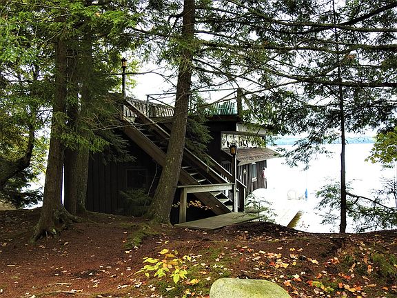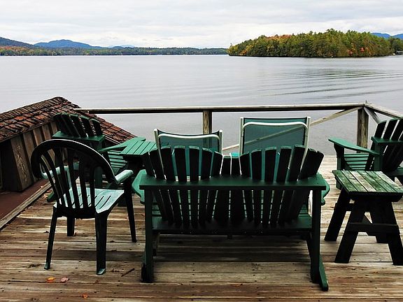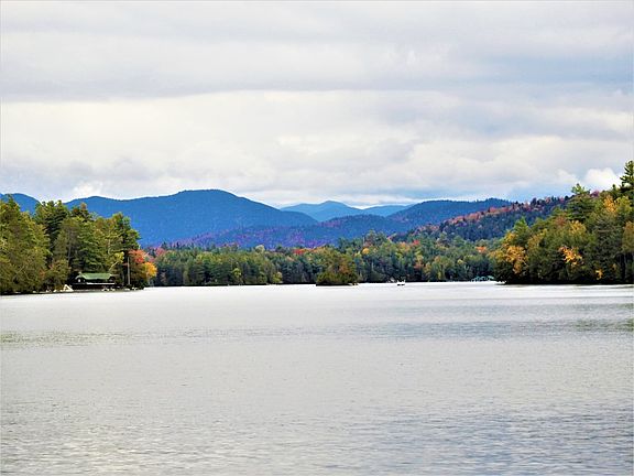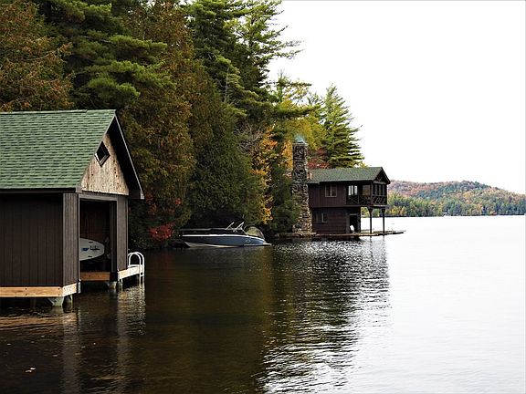 Year round living on prestigious Upper Saranac Lake! Located in Bungalow Bay, this 3 BR, 2 BA home boasts lots of privacy in a level, wooded setting with exceptional lake and mountain views. The interior features a well designed custom floor plan which includes a warm fireplace in the vaulted LR, a DR with lake views, 2 BR's and 1 BA on the main level, and a covered porch the full length of the home facing the lake. An oversized BR and 1 BA complete the second story. Outside, the 2 slip Boathouse features a classic second story open deck with incredible views of the ADK High Peaks and surrounding islands. The 2 covered slips are designed for year round boat storage. A detached 2 stall garage offers additional storage and work shop space for fun projects. The home is accessed by a level, private driveway allowing for easy year-round accessibility and creates the privacy that most camp owners dream of!