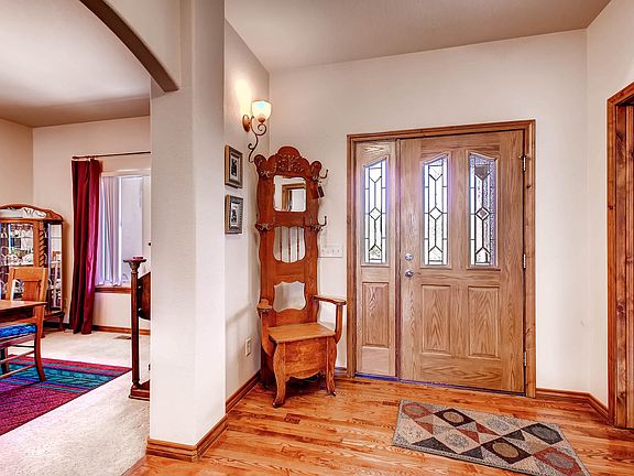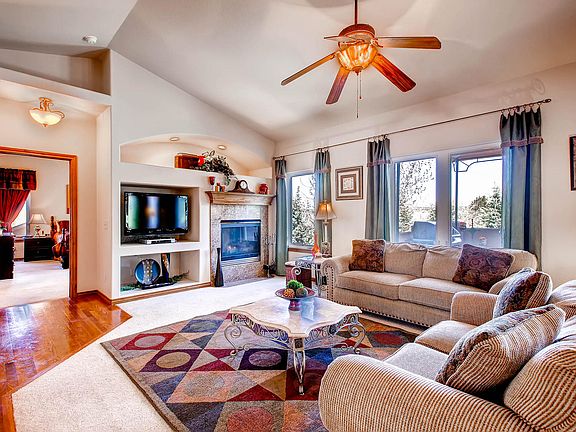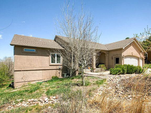 Quality-built stucco home located in quiet neighborhood cul-de-sac. Main-level living with open floorplan and lots of windows to let in the light. Roomy living room features gas fireplace with stone surround. Generous gourmet kitchen features wall ovens, cooktop, granite counters, huge island with serving bar and hardwood floors. Master retreat has private 5 piece bath with soaking tub and walk- in closet. Trex deck with stucco railing gives great privacy yet still allows you to enjoy views of the northern front range. Main level study could also be a 5th bedroom. Lower level walks out to oversized patio. Two of the 3 oversized lower level bedrooms have walk-in closets and the third has double closets. Family room is perfect for entertaining with plenty of space for TV viewing, games, wet bar and another gas fireplace to enjoy. More than 1/2 acre landscaped lot with large fenced backyard. Desirable D38 schools!