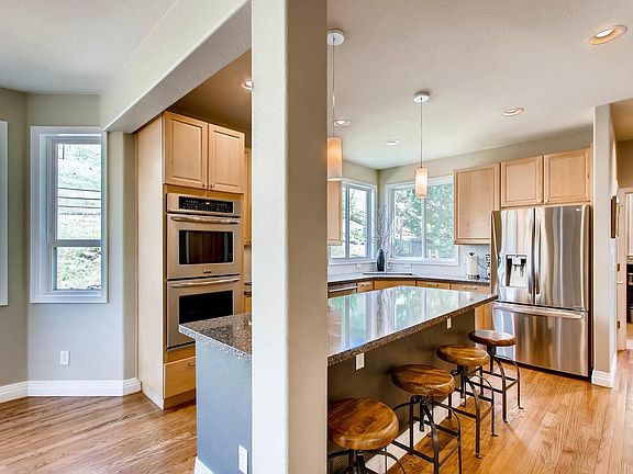 Rare home backing to North Table Mountain in coveted Mesa Meadows! Great views from almost every window and outdoor space! Savor your morning coffee or watch the sunset from the front covered deck. The back deck provides endless views & direct access to NTM with all of it's hiking & biking trails. Your four legged friends will love the large fenced yard with shady spots! Oversized 3 car garage with huge loft storage space will hold all of your CO toys! 4 beds & 3 full baths on the second floor including 2 master bedrooms!! Both been fully updated, main master has gorgeous custom tile walk in shower and double vanity. The main floor boasts eat-in, updated kitchen, formal dining and living room with fireplace, family room with 2nd fireplace and an office.The garden level features an additional bedroom, full bath, gym, family room & huge storage/ping pong room. Walk/bike to downtown Golden's restaurants and breweries, School of Mines, & Clear Creek. This home has everything!