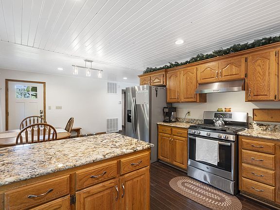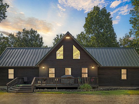 Discover your own 87-acre sanctuary, seamlessly blending comfort, luxury, and adventure. This wooded haven, with partially cleared areas, invites endless outdoor exploration. The home features four bedrooms (upstairs bedroom is non-conforming), and two beautifully remodeled bathrooms boasting a walk-in shower, elegant soaking tub, and stylish tile floors. Modern updates include newer windows, a patio door, updated lighting, a refreshed kitchen with granite counters, newer appliances, and a vaulted ceiling with exposed wood beams.Practical upgrades ensure peace of mind, like spray foam insulation, new gutters, a whole-house generator, a 3-year-old hidden-fastener metal roof, and a newer HVAC system. A cozy gas fireplace and an upstairs loft add charm, while big walk-in closets provide ample storage.Adventure awaits with miles of ATV and hiking trails, seasonal ponds, creeks, and abundant wildlife. The property also boasts a 50x30 insulated, air-conditioned RV garage/workshop, a four-car detached garage, and even a chicken coop. Located on Bull Shoals Lake with Corp of Engineers government frontage, this is the perfect retreat for those who seek tranquility without compromising on convenience. Don't let this rare opportunity slip away--your private paradise awaits!