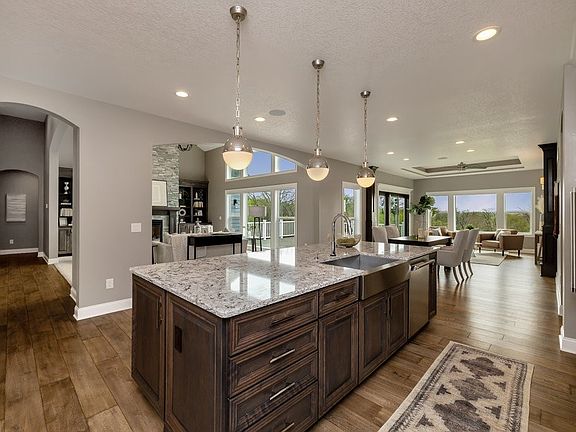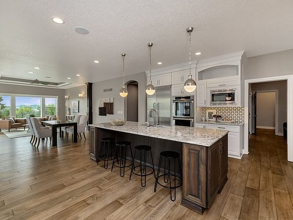 This exquisite 6,000+ sqft walkout ranch nestled on 2.33 acres on a cul-de-sac in Bent Creek Estates is a MUST SEE! Perfect for entertaining & room for the whole family, you're welcomed by an open floorplan w expansive ceilings & sprawling windows boasting views of the incredible property. The great rm has floor-to-ceiling stone FP, built-ins & vaulted ceiling. A gourmet ktchn offers Thermador SS appliances w gas cooktop & double wall oven, custom cabinetry, quartz counters, center island & walk-in pantry w 2nd fridge. A formal dining area & bonus sitting area has slider access to the huge composite deck! A luxurious owner's suite also has deck access, seating area, 2-way FP to en-suite w soaker tub, tile shower, dual vanity & custom his & her walk-in closets! The split bdrm floor planhas 2 adtl bdrms sharing full bath also on ML.A formal office w built-ins, lg mudroom, lndry rm w sink & folding counter, bonus flex storage rm & 1/2 bath complete ML.Switchback stairs w stone feature wall to w/o LL offering huge family/rec space w FP, built-ins, custom wet bar & slider access to covered patio. 3 adtl bdrms share 2 full baths. 2nd lndry & half bath off the wet bar make having company a breeze! This home truly does have it all, also bonus playroom/gym & safe room. Spend the summer enjoying this incredible property w sport court, BB hoop, firepit, playset, trampoline & prof landscaping. 3 car heated garage w epoxy floors! Sec system, speaker system, irrigation & custom blinds!