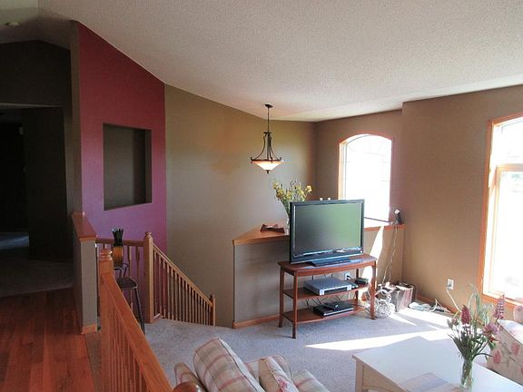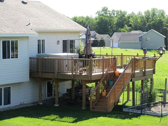 Fantastic custom built 3 same floor bedroom bi-level in the beautiful Waters Edge at Donovan Lakes just minutes from Territory Golf Course & St. Cloud. Well built-open & spacious floor plan- large 2 story entry, upgraded windows with lots of natural light & kitchen/dining with real hardwood floors, tiled countertops & stainless appliances. Master bedroom- with private bath. Unfinished lower lvl (1343 sq ft) -bath already stubbed in. Huge lot-great deck with hot tub & custom add-ons and lighting., Directions Hwy 23 East, R on Co Rd 47 (2nd St. SE), L on 47th Ave NE, R on 4th St. Loop