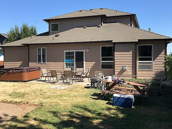 Really nice floor plan with master suite on main floor, 2 bedrooms plus bonus room/office up. Big eat-in country kitchen is open to family room with tall, south facing windows for lots of light even on cloudy days. Gas fireplace makes it cozy & inviting. Formal living room is well separated for peace & quiet. Master has garden tub, separate double-headed shower, walk-in closet. RV pad along side garage; large completely fenced/gated back yard with raspberries, raised beds, strawberries + hot tub.