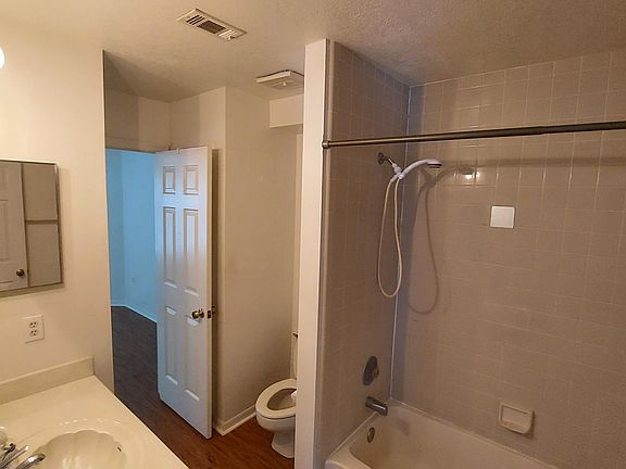 Townhouse Size 1185 square feet A/C Wood flooring throughout Air condition (AC), two ceiling fans Upstairs - two bedrooms shares a joining bath. Downstairs- Living Room/Dining room, Kitchen, 1/2 bathroom, washer and dry room/mud room and garage Include - water/sewage, trash, cable TV/ internet Living Room/Dining Room 19 by 14 feet, vertical blinds, ceiling fans, cable hookup & internet (provide) and coat closet Kitchen Oven/stove, microwave oven, refrigerator with ice maker, dishwasher, garbage disposal, stain steel sink, and pantry Washer/Dryer Mud room with hookup for full size units. Garage- attached garage with door opener. Master bed room (size 14 by 11 feet) vaulted ceiling with fan, walk in closet (eight by 4 feet) and cable TV hookup 2nd bedroom, (size 10 by 11 feet), Bi fold doors for closet and Cable hookup Cable TV/ internet Spectrum Parking: attached garage, driveway and parking across from unit Quite area, association pool with Kitchenette and bathrooms, set on a small fishing lake with dock water/sewage, trash, cable TV/ internet first-month rent, depot and assoc/background check fee $100