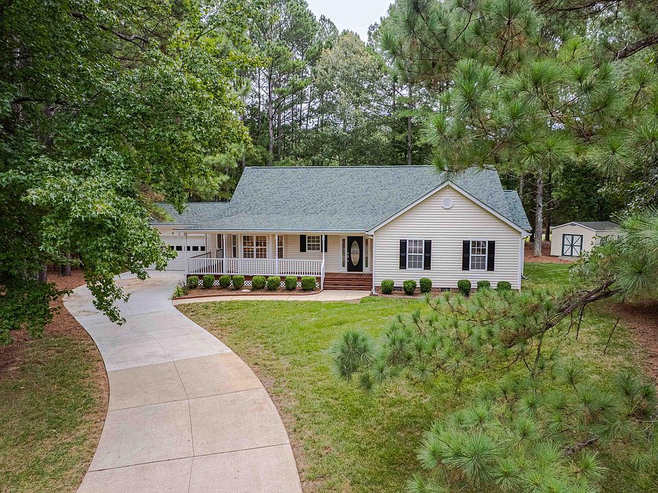 No city taxes on this spacious home just 3 minutes from Yates Mill Pond County Park off of a beautiful stretch of Penny Road. The Carolton Neighborhood features large lots and this beautifully renovated home at the end of a cul-de-sac. Featuring all new flooring, cabinets, counters and tile-work throughout. Your new home showcases a lovely single story floor plan with a luxurious owners bath, huge eat-in kitchen with expansive counter space, beautiful wrap-around porch, large deck, both a shed and a heated workshop! 15 minutes from Downtown Raleigh, 10 minutes from Crossroads Shopping Center and 18 minutes to downtown Apex but with all the freedom of country living! 3 bedrooms, 2.5 baths, shed and workshop on a large lot. All new flooring, cabinets, countertops, plumbing and light fixtures, fresh interior paint. On Well and Septic. Buried Propane tank for gas fireplace and above-ground propane tank for workshop heater.