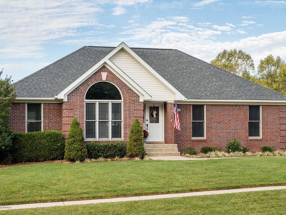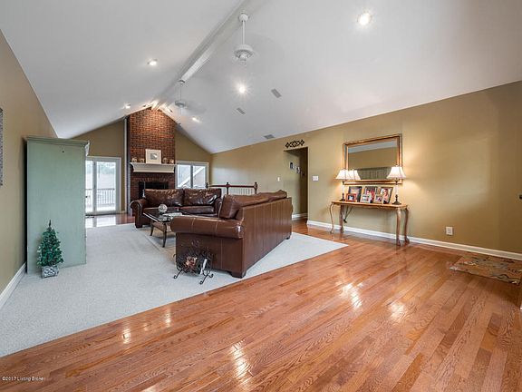 Very well built and maintained walkout ranch style home located on a quiet, ''no outlet'' street in Jeffersontown. First floor features an open, vaulted living room with hardwood floors and fireplace; large eat-in kitchen with hardwood cabinetry; master bedroom with trey ceiling and en-suite master bath. In the lower level walkout, you'll find high 9ft ceilings, large windows, a second fireplace, an office with ensuite full bath (currently used as bedroom), mud area and laundry room. New garage doors and openers. Large deck with steel railings overlooks the manicured yard.