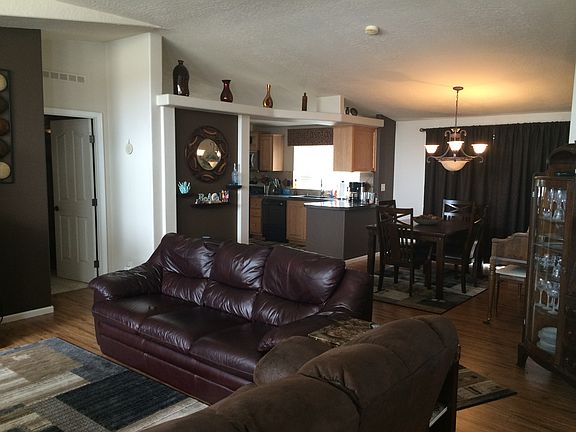 This home includes an open floor plan with 2240 sqft, a formal living and dining room, and more! Vaulted ceilings. Large open kitchen with laminate floors, island, eat-in area, breakfast bar. Master bedroom has a 5 piece bathroom with a jet, walk-in closet with built in cabinets. 2 large decks. Back deck has built in gas line for Bbq and electric 17\' awning. Beautiful landscaping for privacy. Detached 2 car garage with separate workshop and built in table & cabinets. This great community offers a pool, fitness room, clubhouse with a picnic/rec/grill area, playground, and trails. Lot rent $628/ month. Trash is $13/ month. Water & Sewer is based on usage.