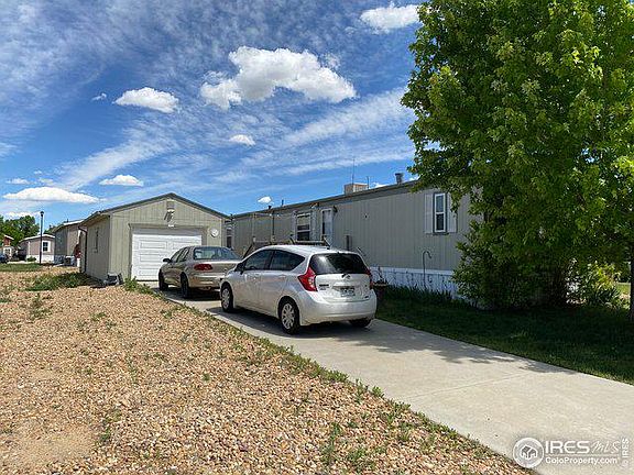 Prime lot in Eagle Crest! Large lot with mature shady trees, grass, sprinkler system, shed, patio, and over-sized 2 car garage! Garage units are rare in this park! Garage has a heater, a/c window unit, opener and room for a work bench. Home features 3 beds, 2 full bathrooms, and a garden tub. Eagle Crest has a community pool, parks, trails, clubhouse, fitness center and beautiful mountain views. Located close to I-25, Highway 119, grocery stores, shopping and schools. Lot rent only $687/mo.
