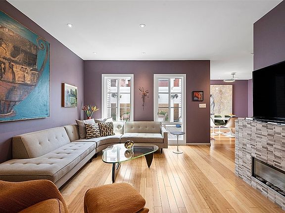 Rare postmodern townhouse, amazing location in Shadyside, just steps to CMU, University of Pittsburgh and UPMC! This coveted Ellsworth Mews complex was designed by acclaimed architect Art Lubitz, with peaked roofs and square windows that are characteristic of his work. Distinctive color palette, bamboo floors, and floor to ceiling windows compliment the space. An airy living room, enhanced by a stylish fireplace, graciously flows into the dining room with Pella sliding doors that lead to a secluded outdoor deck. The well-ordered eat-in kitchen has newer cabinets, stainless steel appliances, and quartz countertops. The 2nd level has the primary bedroom with sizable closets and a newer ensuite bathroom with walk-in shower & a convenient laundry. A 2nd bedroom & full bathroom share the same floor. The 3rd floor boasts a bonus bedroom with cathedral ceilings and a versatile family room that leads to a spacious rooftop deck. Ground level has an oversized 2 car garage, 2 closets & mud room.
