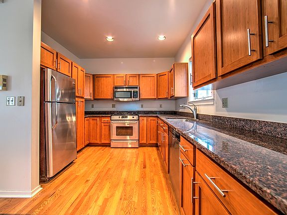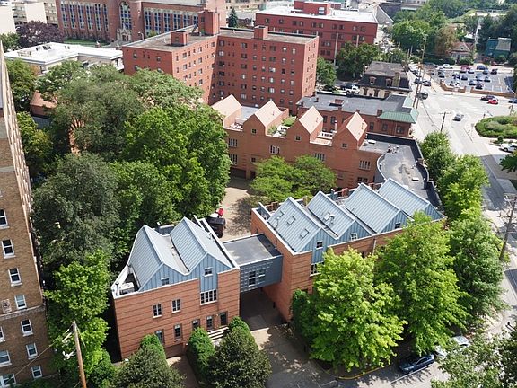 Unique 1 1/2 unit town home in award winning Ellsworth Mews Complex. Spectacular location close to universities, medical centers & cultural attractions. Flexible floor plan. Main level completely open. Spacious, fully equipped kitchen has bamboo cabinets, granite counter tops. and a 8X17 breakfast area. Expansive living room with gas fireplace and interior outdoor 10X13 deck. Large master bedroom with 8X6 closet and updated en suite bath & spiral staircase to 13 x 28 flexible loft space/library. 4th bedroom is comprised of 13 x 11 and 10 x 13 spaces. Third bedroom has a 10 x 5 closet. Lower level family room has a full bath and separate entrance.