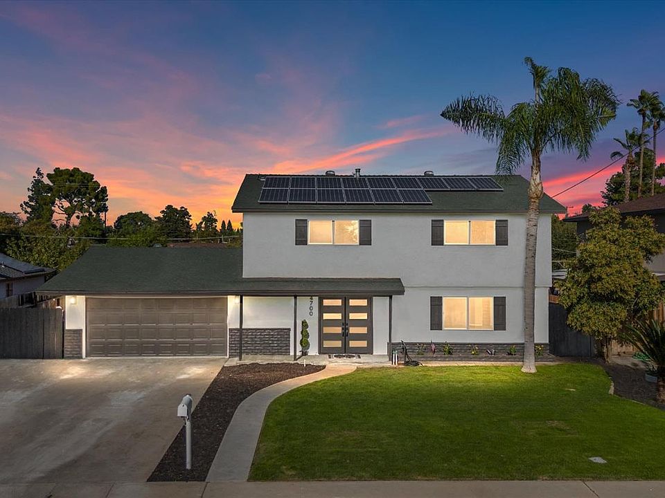 Welcome to this just updated throughout Modern Ranch-Style home with PAID SOLAR! This property features luxury vinyl flooring, a great room & open kitchen with granite counter tops & stainless-steel appliances. It also has a formal living/dining area for family gatherings & holidays! It boasts 2 primary suites, which one would make an ideal mother-in-law quarters or flex room. 5 bedrooms, 3.5 bath total, all with quartz countertops & modern black bathroom fixtures & lighting. Then as you step out to the backyard area, you're greeted by an inviting pool & a picture perfect playhouse for the children or an ideal garden shade for the green thumbs out there! Schedule a showing today & take a tour of this exceptional home!