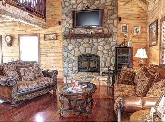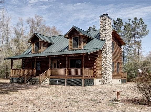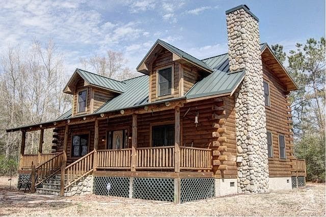 Beautiful custom built log home perfect for country living or a weekend getaway! A rocking chair front porch welcomes you into the open living room which boasts gleaming hardwood floors, vaulted ceilings, & a stunning 2 story stone fireplace. The spacious open kitchen features tile flooring & countertops, beautiful cabinetry, SS appliances, & a large bar overlooking the living room. The 1st floor master bedroom has a private bath with tile floors, double vanity, and tile walk in shower. Upstairs is an open loft space & currently has a 2nd bedroom, bathroom, & an office but easily has enough space to convert to a 3 bedroom home. Nestled on 3 acres, this property is zoned for horses or livestock.Extra features include a deep well with excellent water quality, 12 x 20 wired work shed, 30-year commercial quality metal roof, satellite dish system, & ADT security & fire system. Only a 20 minute drive to Leland, this home has all the benefits of country living without the inconvenience!