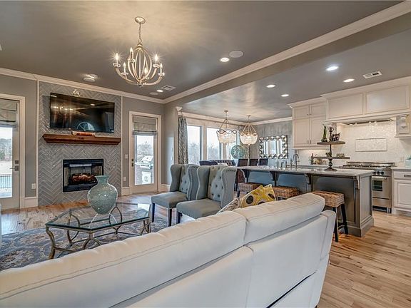 This lovely home is crisp and clean with a modern interior that has stunning views of the neighborhood pond with fountain. This open concept home is perfect for entertaining. The fireplace features a classic herringbone design. The kitchen boasts a commercial gas range, bosch dishwasher, microwave drawer and hidden spice drawers in the hood. If storage is what you need, check out the extra large pantry which will even accommodate a coffee bar, the oversized laundry room with tons of cabinets, the mud bench and computer desk complete with mail cubbies. The luxurious master suite is sure to please with double vanities, large freestanding soaking tub, spacious shower with 2 shower heads, and his and her walk-in closets. Two bedrooms are downstairs and two are upstairs. The upstairs theater is large enough to be a game room. Custom drapery throughout the home. The backyard has wrought iron fencing, pergola, and built in gas grill.