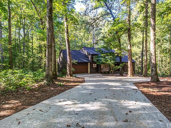 Charming Modern Cabin Home on 3.23 acres in Raleigh! Enter to open living w/vaultd ceiling, dramatic stone FP & catwalk. Updates galore, inclde new kitchen w/shaker cab, new granite, new SS, cntr bar seating & WI pantry. Gorgeous Sunrm w/a view & wrap around deck access. 1st flr Mst w/ensuite w/dble sink, garden tb, sep shwr, WI & deck access. Find 2 more beds & gst bth split by catwalk on 2nd. 2021 updates New roof, trendng paint, new carpet, house re-plumbed & updated fixtures. MUST SEE!!