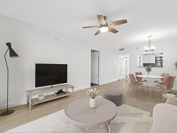 Move right into this freshly painted 1 bed, 1.5 bath condo nestled in a vibrant active community. NO POPCORN CEILINGS! From the moment you step inside, you'll greeted by an abundance of natural light. Living space has an open layout that seamlessly connects the living room and dining area. Plenty of room for a pull-out couch for overnight guests. The eat-in kitchen boasts a contemporary backsplash. Primary bath has been re-tiled. New beautiful luxury flooring. Primary bedroom has two oversized closets. One of the standout features of this condo is the screened lanai, which overlooks the golf course. Pristine pool, sauna to unwind, a well-equipped gym, clubhouse for social gatherings and events, tennis and pickle ball courts. Bus that provides free service. Minutes to shopping centers. Enjoy Okeeheelee Park nearby, 15 minutes to Wellington (Equestrian Capital). Come see this cozy condo for yourself. Call today!