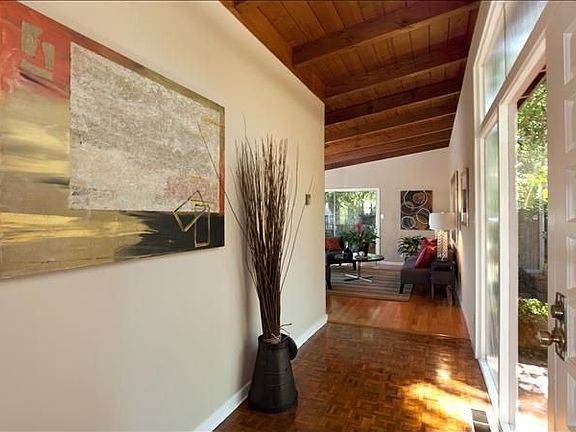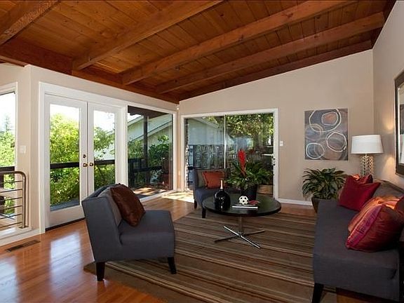 Set amongst a majestic grove of oak trees in the Sequoyah Hills, this rare level-in mid century modern features open flr. plan, vaulted ceilings, updated kitchen, hrdwd. flrs and walls of windows and tiered decks, all artfullfully integrated to capture the beautiful surroundings. Unique & Special!
