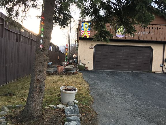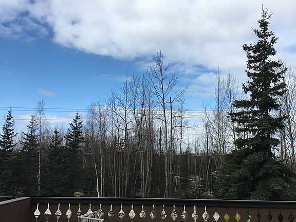 Awesome location on midtown trail system to bike to UAA/APU/ medical centers. Minutes to Boniface gate, JBER; adjacent to excellent K-8 Winterberry Charter School, and bus stop nearby. Newer appliances, flooring. Vaulted ceiling with lots of windows and winter mountain views from morning-coffee eastside balcony. Huge deck sunny west side facing trails. Very spacious master can be divided for 3rd bedroom; one end has closet other end has walk-through double closet. 2nd bedroom in separate from master by laundry area. Available late May. Over-sized double garage w/workshop area. No fee RV/toys locked parking, garden space. The unit is desirable end unit at end of street; so private with no traffic and very ample visitor parking, even space for visiting RV's.