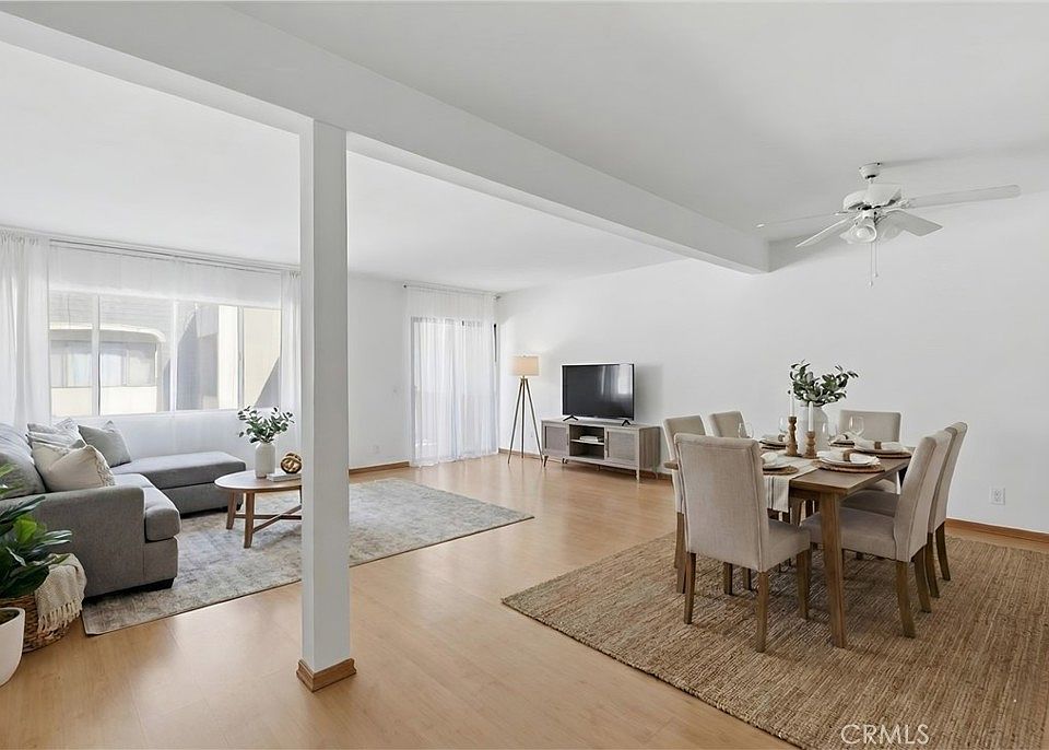 Welcome to this charming top-floor condo located in the heart of Sherman Oaks, just moments away from Ventura Boulevard’s boutique shops, trendy restaurants and vibrant entertainment options. Flooded with natural light, the open-concept floor plan features large windows throughout and a private balcony, perfect for enjoying a morning cup of coffee or unwinding after a long day. The spacious living and dining room flows seamlessly into the well-equipped kitchen, which boasts a breakfast nook with a built-in table. The generously sized bedroom offers a walk-in closet and is complemented by a beautifully remodeled bathroom. Additional highlights include two side-by-side parking spaces, community pool access and convenient laundry facilities on each floor. A rare opportunity to enjoy comfort, convenience, and the best of Sherman Oaks living!
