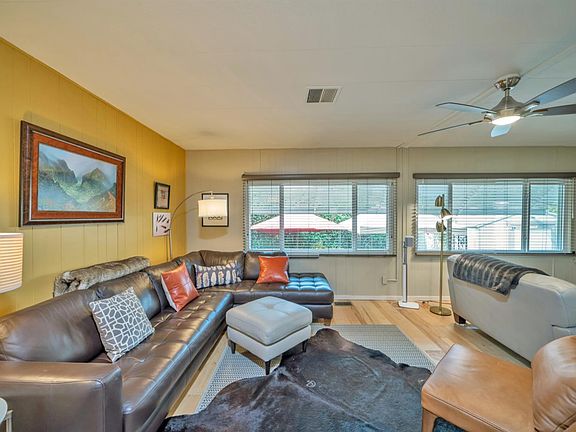 Gorgeous INSIDE and OUT! It all starts with the beautiful landscaping the moment you drive up. Sellers have really made this place special with all the plants/trees (on drip system) just perfectly placed and selected for year round enjoyment. Multiple patio and seating areas, raised vegetable garden, the cutest little herb garden, gazebo, storage shed and so much beauty to take in. Inside has been updated with modern touches, nice open floor plan with beautiful hammered hickory wood & Travertine flooring throughout, custom window coverings, updated lighting and fans. Roomy kitchen with Wolf gas cooktop, stainless appliances, hood, & sink. Counter with a custom butcher block top. Two nice sized bedrooms and updated bathrooms. Newer electrical, pipes, windows, doors, water heater, insulted sub floor,security system ...and so much more!!! Located in the prestigious Greenstone Estates with amenities that include: clubhouse w/kitchen, library, gym, pond, billard room and pet friendly.