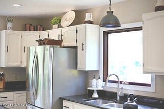 On almost an acre, and usable land - you will find custom, creative ideas that only someone with pride of homeownership has. You can have the largest Christmas tree on the block lit up, all with its own power supply at the bottom of the tree. Or you can use that power supply to charge an RV or trailer. There are flood lights all around the house,so you can see all the wildlife wonder through youso you can see all the wildlife wonder through your yard. There is so much storage - you will never have to clutter your home. There is a "she shed" and a "he shed", along with a built-in kennel for the dog (or miniature pony). There are 2 wells with a large holding tank so you should never run out of water. There is a spare room off the garage that can be used as a gym and/or office. Huge living space connected to the kitchen and a sunken fireplace for an extreme ambiance. All lighting has been updated, as well as fresh paint throughout. Newly installed floors, with trim package. Perfect family home with a separate family room area downstairs. You can also make a mother-in law apartment downstairs (separate walk out door). Area already plumbed for a sink / kitchenette area.