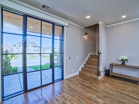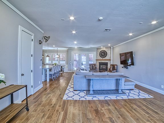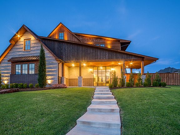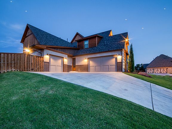 Remarkable home in east Edmond impresses at every level! Modern Farmhouse at its striking best! You will be greeted with hickory wood floors from the entry throughout the main living areas, stairs, kitchen, and halls. The open concept design allows for natural light and plenty of storage and cabinet space. A Thermidor 48" gas range/oven, galley kitchen sink, Quartzite counters, full size refrigerator/freezer, custom coffee bar, banquet seating, "sonic style ice" maker, wine fridge, and large walk-in pantry gets you started in this dream kitchen. There is so much detail and is a must see home! Master suite connects to the laundry room, stand alone soaking tub, oversized shower with frameless glass, double vanities with appliance/counter storage, barn door connects suite to master bedroom. Upstairs has three bedrooms, one with ensuite, and two share a bath. Upper level bonus room, outdoor living area with kitchenette and Pool. Third garage has a pet washing station. Ask for detail sheet!