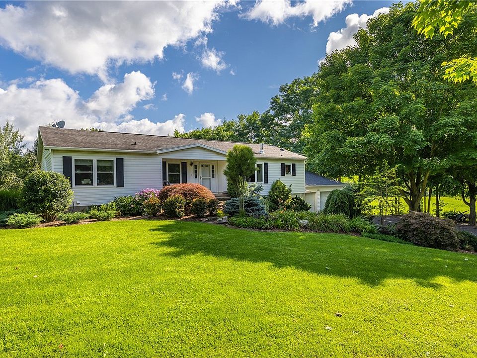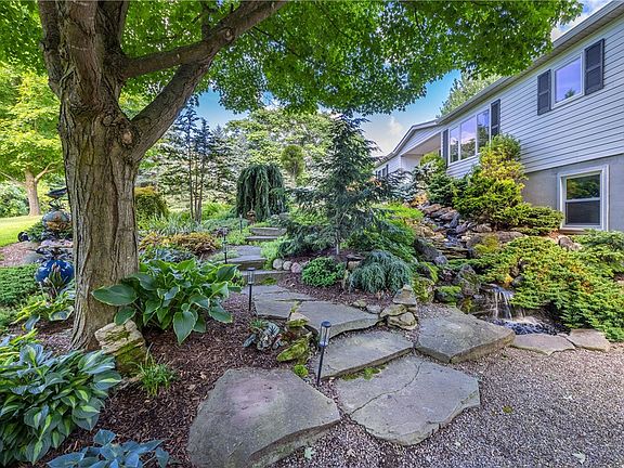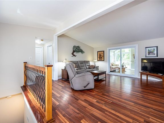 This home has been completely redone with over $160,000 in improvements since 2012! An open and welcoming floor plan with a stunning sunroom (3 walls of glass) overlooking the beautiful yard! Huge kitchen with Cherry cabinets and Brentwood stone countertops! Tiger maple floors in the great room with a cathedral ceiling. Cali bamboo engineered hardwoods in the bedrooms. Stunning master bath. Sunroom and finished lower level not included in the square footage! There are two propane stoves. All appliances convey. Windows 2013 and 2014. Furnace, a/c and propane 2012, whole house backup generator 2020, hot water tank 2019, insulation 2016,2 garage doors, 2015, 200 amp service 2020, water softener 2012, reverse osmosis system at kitchen sink 2012 (new filters installed 2024), gutters 2016, sunroom 2016. So many fabulous upgrades! Delayed showings begin on Friday 10/11 and no negotiations until Tuesday, October 15th at 11am.