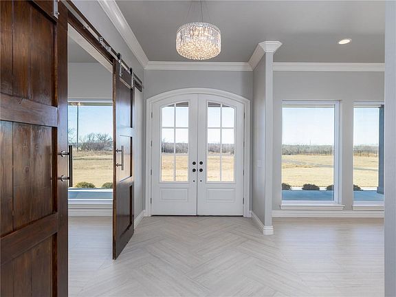 Gorgeous home on 5 acres. The finest amenities included in this home, offering all the luxury and country living in one. Walk onto front porch through the open entry, to the right is the study featuring sliding barn doors and closet, allowing it to double as an additional bedroom. The grand dining and main living areas feature divine lighting fixtures, painted wood work, recessed lighting, floor to ceiling wood stained built-ins surrounding the hearth, making it the focal point of the room. The additional dining features a butlers pantry, along the back of the rooms extravagant picture windows. The open kitchen has a vast center island, glass paned upper cabinets that feature inset lighting, stainless steel built-in appliances, and wine fridge. The master bedroom features a built-in entertainment center, master bath is nothing short of spectacular with stand alone soaking tub and heated floors. Entire home is enveloped with spray foam, has Low-E windows, and hidden safe room. 2021-04-02