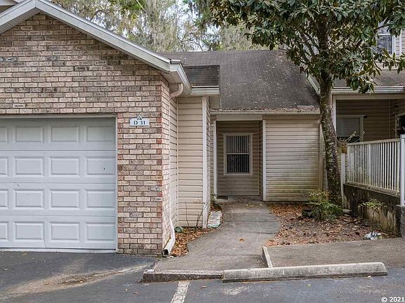 Quiet 2 bedroom 2 bath condo with attached one-car garage in the gated community of the Gables. Great location conveniently located next to Celebration Pointe. This unit is located on the bus line. This unit has an abundance of natural light and the screened-in, covered back patio backs up to a wooded area. Pride of ownership is seen in this unit, Carpet throughout & ceramic tile in the kitchen and bathrooms. Open and spacious 1 story floor plan with no one living above or below you. Features a large living room with dining area, open kitchen, high ceilings throughout & covered screened porch. Each spacious bedroom has it's own bathroom & large walk-in closet. Peaceful view from the back porch! Amenities include gated entry, beautiful pool & hot tub, 24 hr fitness center, clubhouse, tennis, and basketball courts. HOA fee also includes cable. Great location conveniently located next to Celebration Pointe with all of its restaurants, shops, hotel, etc. close to Shands Hospital, I-75, & University of Florida.