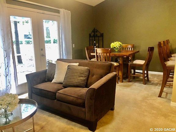 Beautiful and UPGRADED 3 Bedroom & 3 Bath townhome with 1 car-garage + designated parking in the GATED community of The Gables! On bus line, walking distance to Celebration Pointe with shopping, cinemas & dining, quick hop to Butler and I-75 and a short drive to Shands, the VA and the university! Each of the 3 SUITES offers great bedroom space, it's own full bath with maple cabinetry and granite counters and each has a walk-in closet! UPGRADED KITCHEN boasts of beautiful granite counters, premium maple cabinetry with soft-close drawers, and top of the line energy-star STAINLESS STEEL appliances with a full-size fridge with French doors & bottom freezer! 3-ton TRANE HVAC system, sprayed R-30 attic insulation & solar tubes do lower utility bills! Additional features are high ceilings, tons of storage, French doors to a screened-in porch overlooking common areas! HOA includes CABLE! Community offers sparkling pool + hot tub, 24-hr fitness center, tennis and basketball courts, clubhouse, green spaces! One suite downstairs & 2 suites upstairs. Washer & Dryer convey! FURNISHED with dining and bedroom furniture with acceptable Offer! CALL NOW for your private tour!