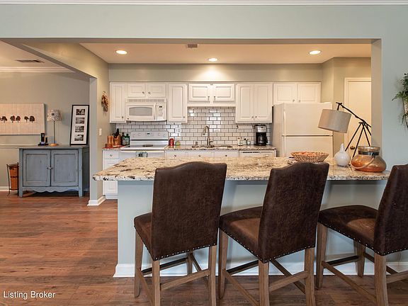 Beautifully updated 2 bed, 2 full bath St Matthews condo on the 2nd floor is ready for its new owner*New kitchen cabinets, granite countertop, backsplash, fixtures, counter island cabinets and seating added*Gorgeous wood floors added throughout the main living space and primary bedroom*An abundance of light in the large living room which flows seamlessly to the dining room, kitchen*Large primary bedroom has a private full bath with newer tile surround in shower/tub combo, updated tile flooring*2nd bedroom has new, neutral carpet* Guest bathroom has tile surround in shower/tub combo and updated tile floors*Stackable washer/dryer were added to the kitchen closet*Bonus Features: Crown molding, additional 8x8 storage room, and located near the pool and a short walk to the park