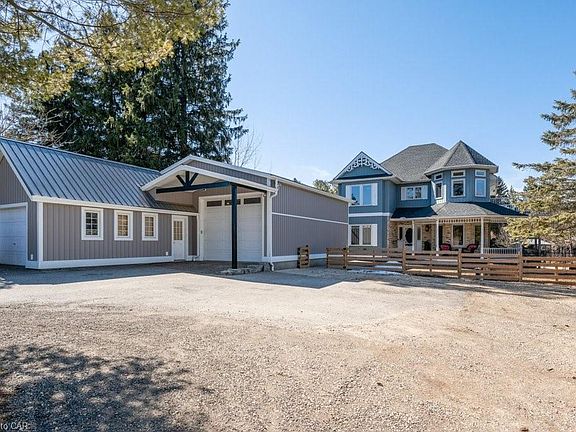 This one has it ALL! Over 2500 sq ft 4 bedroom 2.5 bath home - check! Inground pool - check! Flat fenced-in backyard - check! Finished walk-up basement - check! Double Garage - check! 5-car garage - CHECK!!! Parking for your entire family when hosting summer BBQ's - check! 1.01 acres - check!! Close to 401 yet far enough away to enjoy your tranquil setting - CHECK!!!! Truly a home and property that needs to be seen. This gorgeous Victorian style home is carefully set back from the road allowing ample parking space and a gorgeous drive through the stone columns to your home. Park in either garage! As you enter through the spacious mud room you find the powder room is smartly located away from the living spaces - and enter into the gorgeous and bright spacious kitchen with an absolutely stunning granite with waterfall edge. This opens up into the dining room which has a breathtaking view through the patio doors to the private and expansive back yard with a 20 x 40 INGROUND POOL. The family room features a gas fireplace and tonnes of natural light - also overlooking your inground pool! The main floor rounds out with a formal living room complete with a barn board mantel and built in electric fireplace, a cozy room to unwind at the end of the day. What a gorgeous main floor! Up the stairs finds 3 generously sized bedrooms as well as the oversized master with updated en-suite bathroom, walk in closet and a HUGE deck overlooking the pool and greenspace. The family bath was just recently finished! Laundry upstairs finishes off a near perfect second floor! The basement level gives your family even more living space with an option for a bedroom, rough-in bathroom, 2 rec rooms and a walk-up! Upgrades and updates are truly too numerous to mention. Book your private showing of this Beautiful Home and Property that will soon be called "your home"