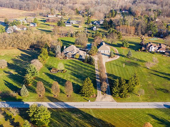 Swimming pool in a vacation setting! You won't need to go on vacation with the inground pool, cabana oasis, and almost 3 acres to set up your outdoor fun. This home had some updates in the last 3 months: fresh paint, wallpaper removed, new family room carpet, new bath flooring and outside paint. There's a 1st floor Owner's suite that's perfect for extended family or you. There's also an Owner's Suite upstairs with a balcony looking over the back yard. Upgraded kitchen w/granite counters, custom cabinets, & large eating space. Large deck and fire pit. The in-ground pool has an automatic cover for easy opening & closing. The pool cabana offers an eating area, a spot for a TV & place to invite your friends. Finished lower level with kitchen. Motor home parking area too.
