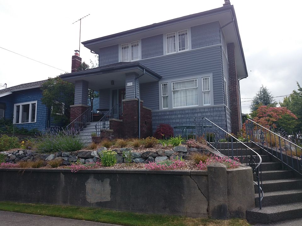 Classic 1917 Seattle Box with Craftsman detailing perched up off the street on a sunny corner lot just steps from Wallingford's many services. Formal entry w/open stair case. French doors open to living rm w/fireplace, large formal dining rm, delightful kitchen w/eating area & access to back yard. Beautiful hardwood & fir floors throughout. Great architecture and an excellent location.