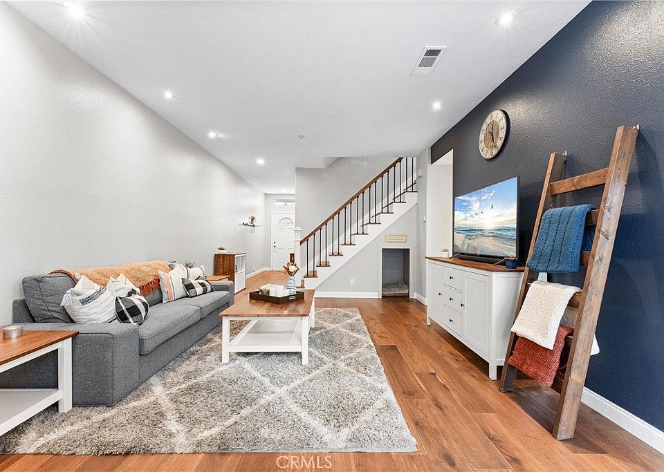 Less than a mile from the sand, this beautifully upgraded Pelican Point residence offers peaceful coastal living in a quiet interior location with its own private yard and direct access to the community pool. Thoughtfully designed across two levels, the home features soaring ten foot ceilings, abundant natural light, and a bright open layout that elevates both daily living and entertaining. The main level includes an upgraded kitchen that connects seamlessly to the living areas, a convenient half bath for guests, and direct access from the oversized two car garage. The private backyard patio extends the living space outdoors, creating an ideal setting for relaxing, dining, or hosting friends. Upstairs, the primary suite offers a private balcony, a generous walk in closet, and an upgraded en suite bath. Two additional bedrooms provide excellent size, versatility, and ample closet space, making them ideal for guests, work, or retreat. With thoughtful enhancements throughout, an exceptional location, and the best of Huntington Beach just moments away, this move in ready Pelican Point home stands out as a rare coastal opportunity.