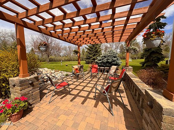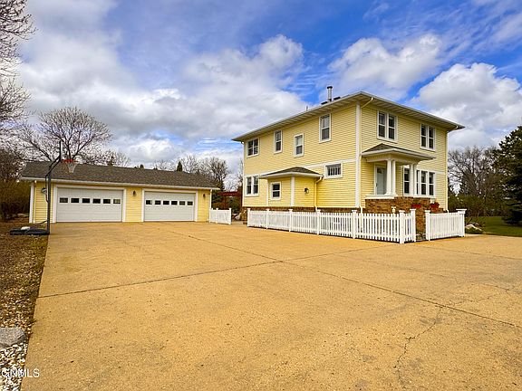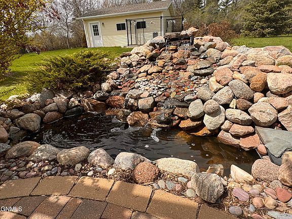 OPEN HOUSE IS CANCELLED!! This one of a kind prairie foursquare home was built in the early 1900's in downtown Bismarck and moved to its present location in the early 1970's . A charming rural property that has historical significance while offering modern style and convenience. The premium location is so close to amenities, just 10 minutes from shopping. The lot is on 3.32 acres positioned on a corner and surrounded on two sides by numerous mature rows of evergreens and deciduous trees that nicely protect it against those ND northwest winds. Nestled in the north tree row is a large stone firepit where you can enjoy summer and autumn bonfires with chopped wood seller is leaving behind. When you walk into the home you are welcomed by beautiful original oak flooring and staircase. Off to the right the sweetest french doors open into the large bright living room and separate dining room. The windows are plentiful throughout the home and bring in a wonderful sunlit glow they are in great condition as well as the roof. There's one bedroom on the main level along with a full bath and the large eat in kitchen has ton of oak cabinets for storage. Upstairs is a large bedroom that spans the length of the home with two large closets. it faces east to enjoy the sunrise! The upper level has a full bath with quaint wainscoting and two additional bedrooms with one that would be ideal for an office. The basement was updated a few years ago with a spacious family room, 3/4 bath and spacious laundry/utility room has additional closets for storage and cabinetry along with a sink. Off the family room is a nice storage area with wood shelving. In the backyard is a large brick patio and pergola with a gorgeous stone water feature with water bubbling down the rocks into a small pool. What a great place to enjoy complete privacy! There is a large 16 x 24 garden garage with overhead door and a custom dog kennel that features an exterior sloped concrete area with a drain and heated indoor dog house. There's also a large garden just ready for you to dream up next year's produce! It has a raspberry and asparagus patch and a grapevine that produces yearly. The detached garage is large at over 1000 ft. and the concrete driveway offers plenty of parking. This property is unique in its historial charm, lot size and proximity to Bismarck. Come take a look!