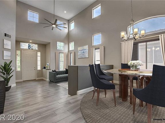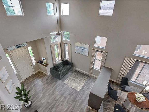 Beautiful Remodeled 4 Bedroom Plus loft home on Cul-de-sac lot in Gated Community with Pool access located just outside Summerlin! Amazing Soaring vaulted ceilings & colonial rail staircase as you enter this spacious floorplan!1 bed/bath downstairs! Upgraded wood look tile throughout main living & wet areas with designer paint & upgraded LED lighting & fans! Home Theater system with projector & Sound system included! Lush green Lawn front & Rear!