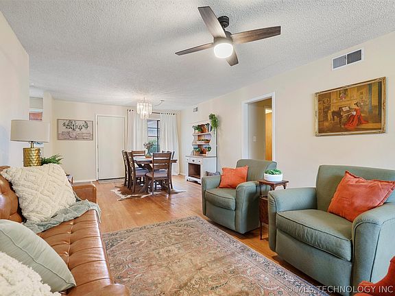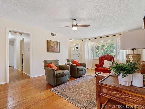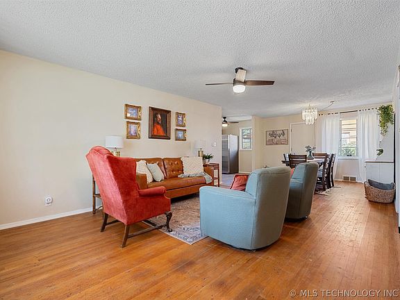 Adorable home with original hardwood flooring! Large kitchen with updated kitchen flooring, cabinets and appliances in 2024. Updated interior paint, ceiling fans and base boards 2024. Three spacious bedrooms. Formal dining area. Garage has been enclosed to make a great gathering/family/recreation room with an abundance of space. Electric was updated in 2022. Oversized corner lot with partial privacy fence. Beautiful mature trees supplies ample shade. Covered back patio.