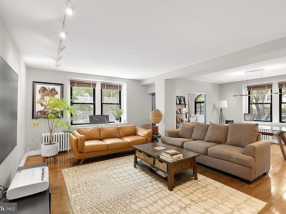 Welcome to Residence 109 at Truman House, a distinguished boutique condo building once home to President Harry Truman from 1941 to 1945. This expansive one-bedroom plus den, one-bathroom condo spans over 1,000 square feet and boasts modern updates completed in 2018. Upon entering, you’re greeted by a large foyer that opens into a spacious living and dining area. Hardwood floors and west-facing windows bathe the space in warm, natural light. The charming sunroom, with its statement sliding glass doors, offers an ideal spot for a home office or a cozy reading nook. The kitchen features a suite of KitchenAid stainless steel appliances, granite countertops, and a stylish subway tile backsplash. Custom cabinetry ensures ample storage. The bedroom and ensuite bathroom have also been thoughtfully renovated. The bedroom includes built-in dressers and a walk-in closet, while the spa-like bathroom boasts a gleaming walk-in shower with elegant teak accents. The property conveys with a storage unit. Located in the beautiful Forest Hills neighborhood, this property is just a short walk from the Red Line Metro. Enjoy the convenience of nearby grocery stores like Giant and Safeway, and explore local favorites such as Politics and Prose, Bread Furst Bakery, Comet Ping Pong, and Sfoglina. Please note, square footage is measured by a third party and may be approximate.