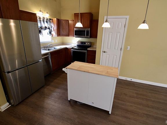 Welcome to 4701 Crowne Ridge! This home features a large, open living area with vaulted ceilings and newly installed vinyl plank flooring. Kitchen features updated stainless steel appliances and included center island. There's an open staircase that leads up to the bonus room. The primary suite is spacious and features a full bathroom and large walk-in closet. The 2nd full bathroom has been updated with newer vanity, fixtures & led/bluetooth speaker exhaust fan. The owner's have also updated the laundry room. Updates per seller: New Furnace & A/C (2020), Water Heater (2014), Refrigerator (2022), Range, Dishwasher & Microwave (2015), Vinyl Plank Flooring (2023), Carpet (2023). Outback features a covered patio space, outbuilding and a fully fenced in yard. Possession is being offered at closing!