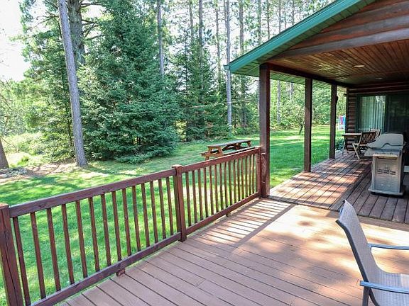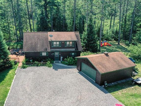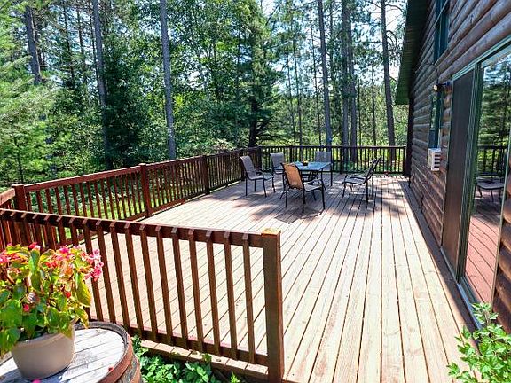 This sweet home is ready for a new owner. The location is ideal for those wanting some wooded privacy, yet near to surrounding Eagle River and Three Lakes for your work or play. Mud Creek meanders the back of the property, with 178 ft of frontage. A contemporary design custom built home in 1997, it offers an open concept interior with stacked stone fireplace and soaring ceilings. The layout includes a master bedroom with an attached bath on each level, along with 3rd bedroom on first floor. The exterior features a wrap around deck and covered porch area facing the creek. Take a look today, you'll fall in love! 10017