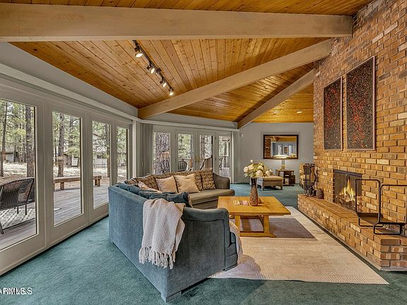 Perfectly placed on a spacious acre + lot, you will find this classic mountain home in one of Flagstaff's most desirable communities, Lakeside Acres. Find yourself in awe upon entering the unique octagon living space - an open room lined with floor to ceiling windows. The fireplace set in the middle of the living space makes for the perfect focal point. Enjoy a cozy night in next to the fireplace, watching the wildlife pass in your backyard. With many access points to the spacious back deck, including 2 of the bedrooms, this home allows for outdoor living in the cool ponderosa pines. With its peaceful surroundings, you will enjoy sitting out on the front porch to enjoy a morning coffee or afternoon tea. This single level home has a split floor plan with 2 primary bedrooms and an oversized garage. Don't miss the pullouts in the kitchen. Beautiful tongue and groove ceilings throughout the entire home. This one of a kind single level home won't last long! As part of the Country Club HOA you have access to all of the amenities which includes two pools, gym, pickleball courts, tennis courts and is situated by a local favorite the Oakmont restaurant and the Continental Country Club Golf Course. City of Flagstaff water, sewer, garbage collection, fire, police, road maintenance and street snow removal.