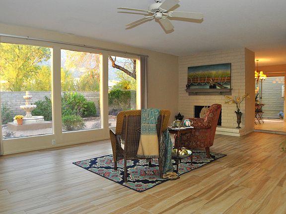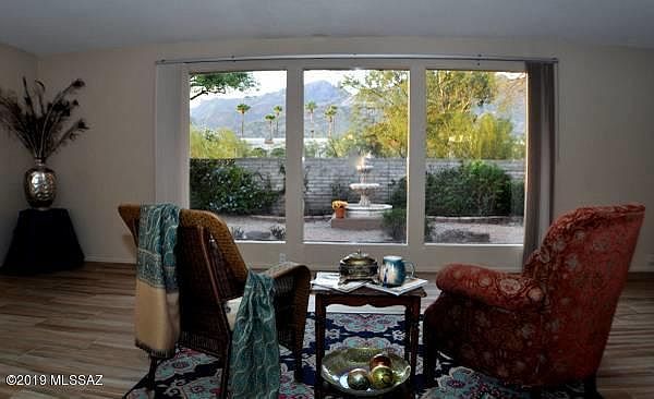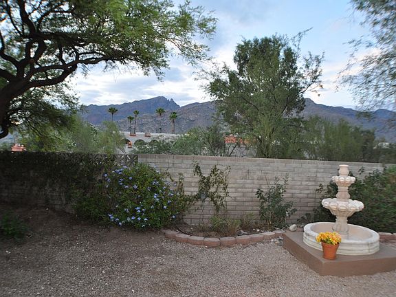 Located at the end of a quiet cul-de-sac in the Catalina Foothills is this beautiful 3 bedroom 2 bathroom home. Expansive windows bring light and majestic views indoors creating an unparalleled atmosphere. Home has so many great features including: over-sized living room with fireplace, bar, atrium, formal dining room with mountain views, large kitchen with eat-in area, large master suite with patio, master bath with dual vanity and Roman shower/tub, second bedroom with walk-in closet, third bedroom/office with double closets, 2 phone lines & 2 cable lines, large laundry room, spacious 2 car garage, air conditioned, private yard with fountain and amazing mountain views!