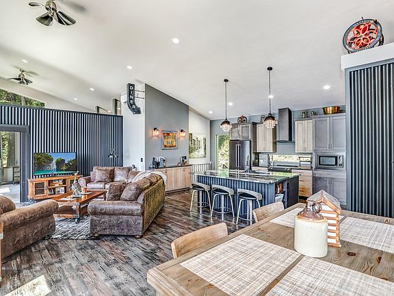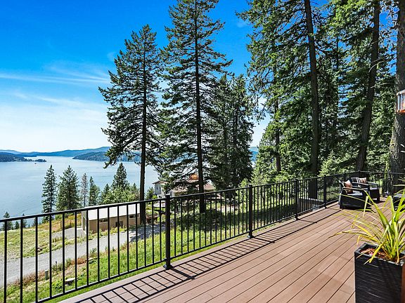 Stunning Lake and Mountain Views AND custom PNW Architecture this home is truly spectacular! Perfectly placed in the pines on nearly 2 acres above Lake Coeur d'Alene, and minutes from downtown. This 1776-square-foot 2bed/2bath house was designed to maximize panoramic views of Lake Coeur d'Alene and the surrounding mountains. The owners wanted a rugged house that would favor both industrial and natural pacific northwest materials. The main floor great room is light filled with an amazing custom kitchen, dining and living space all highlighted with walls of windows and sliding glass doors opening to expansive views of the lake and mountains. Decks and patios on every level allow for a continuous flow from the indoors to the outdoors. One of a kind - It truly is the perfect Idaho Life!