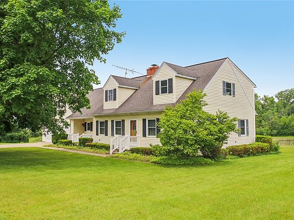 Nestled on 9+ private acres with a pond, this charming Cape Cod home offers 4 bedrooms, one on the 1st-floor with an adjoining bathroom. Also on the first floor is a laundry room, a large and cozy family/dining room combination, a kitchen, a formal dining room, and a formal living room all with beautiful hardwood floors. A sunroom with a hot tub sits at the back of the house overlooking the pond and the grounds. There is central AC on the 1st floor with split units in each upstairs bedroom to keep you cool on those hot summer nights. An unfinished bonus room above the garage offers endless possibilities. The basement features tall ceilings and ample space for a hobby or recreational areas. All appliances are included, including the freezer and refrigerator in the basement. The well provides water to the outside spigots, while the home has public water which is filtered and softened. The central vacuum is a convenient feature for easy cleanup. The home is well insulated inside and out. There is a partially fenced-in area in the backyard. The 32' x 16' barn provides an immense amount of storage space. The current taxes reflect the previous assessed value of $268,900. Neighbor has deeded access to use water from the pond to irrigate his fields.