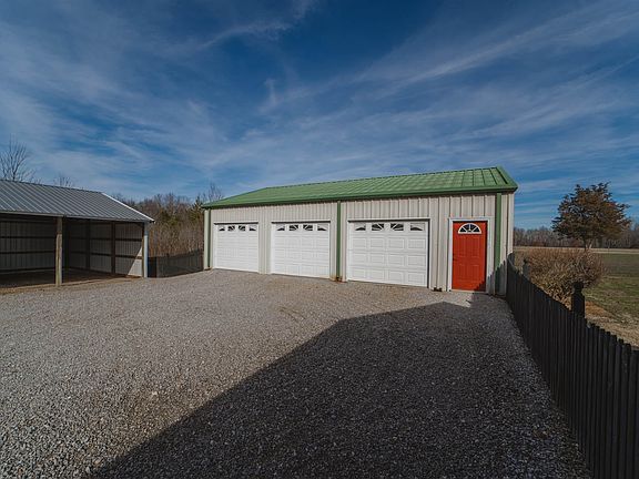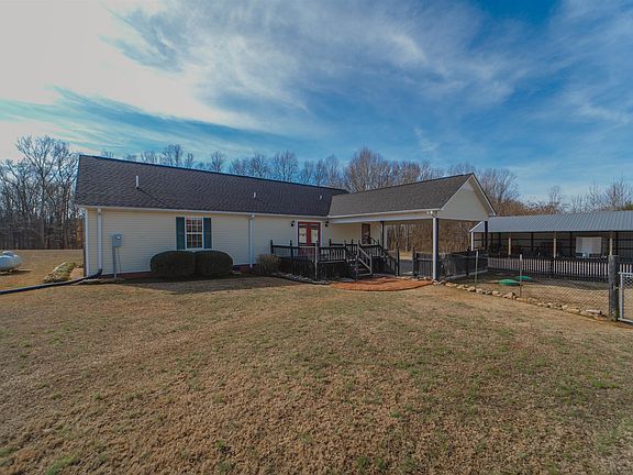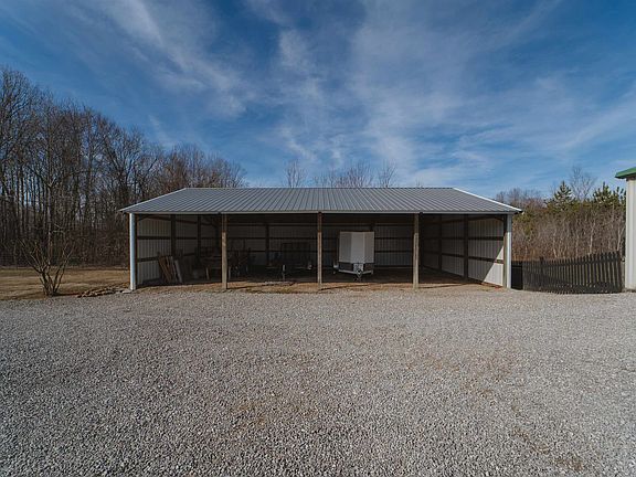 BRING THE HORSES to this spectacular 6.35 acres retreat. For the horse enthusiasts, you will enjoy this new 48x36 barn with 3 stalls (possibly 8) with 12' overhang, 50' round pen and paddock/turnout. For the car enthusiast you will enjoy the detached 3 1/2 car garage with full bath and plenty work space along with a 4 stall shed for your bigger equipment or trailers. Enjoy relaxing on your full front porch before retreating into your spacious 3 bed 2 bath home with large great room and gas fireplace. New roof was installed 2021, HVAC less than 1 yr old, water heater 1 1/2 yrs old, and kitchen appliances less than 2 yrs old. This property has it all and price to sell. Don't delay schedule your private tour today.